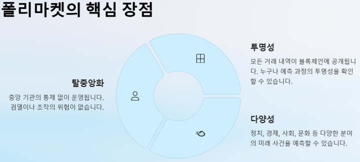 폴리마켓은 블록체인 기반으로 운영되며, 정부나 기관의 통제를 받지 않고 운영됩니다.